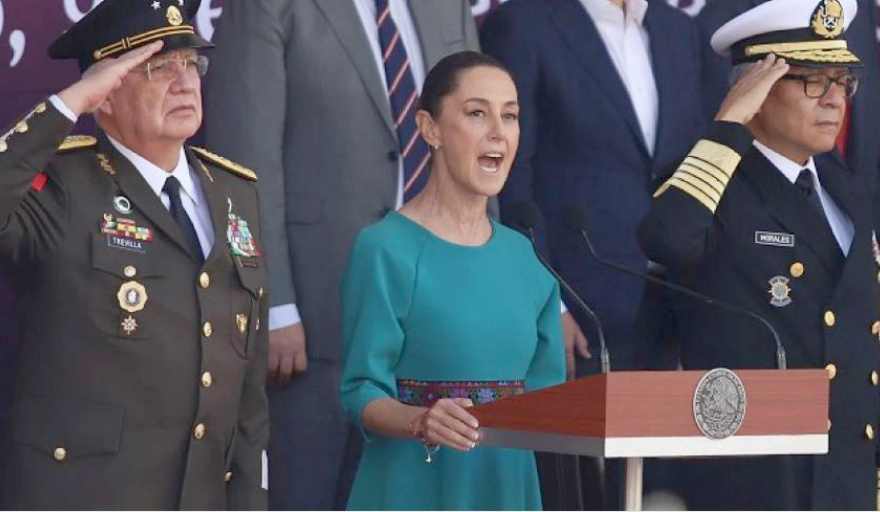 En la ceremonia por el 112 aniversario de La Marcha de la Lealtad -por primera vez encabezada por una mujer presidenta, Claudia Sheinbaum Pardo-, el secretario de la Defensa Nacional, Ricardo Trevilla Trejo advirtió que “nuestra soberanía no es negociable” y que, “aún con recursos modestos”, las Fuerzas Armadas tienen “el temple y la certeza para encarar cualquier amenaza que atente contra el país”.