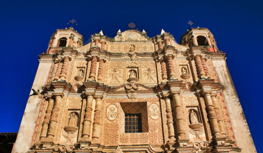 La fachada del Templo de Santo Domingo es un ejemplo destacado de la arquitectura colonial mexicana realizada por manos mayas.
