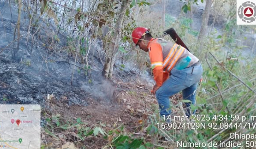 Elementos de Protección Civil Ocosingo, CONAFOR y Protección Civil del Estado han unido esfuerzos para combatir el incendio reportado en la salida a Palenque, en la zona colindante de las localidades de Corazón de María y Patria Nueva.