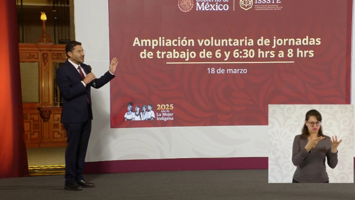 Durante la conferencia mañanera de la presidenta Claudia Sheinbaum Pardo, este martes 18 de marzo en Palacio Nacional, Batres explicó que se tratará de una ampliación voluntaria de las jornadas laborales, pasando de 6 y 6.5 horas a 8 horas.