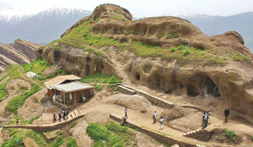 El castillo de Alamut en el noroeste de la provincia y cerca del pueblo de Gazorkhan de Qazvin es uno de los castillos históricos únicos en Irán y está ubicado en la cima de una roca cuya altura es de 200 metros en comparación con la tierra circundante. Este enorme castillo incluye dos castillos superior e inferior, y sus cuatro paredes están construidas de acuerdo con la forma y posición de las rocas, y es por eso que el ancho de las diferentes partes es diferente. Las rocas alrededor del castillo son rojas y grises en dirección noreste a suroeste. El castillo está rodeado de acantilados por los cuatro lados, y la única forma de entrar al castillo es por la parte final del lado noreste.