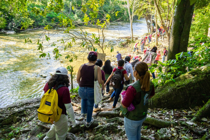 El H. Ayuntamiento Municipal de Palenque, que preside el Lic. Jorge Cabrera Aguilar, a través de la Dirección de Ecología y Medio Ambiente, en coordinación con estudiantes de la Universidad de Ciencias y Artes de Chiapas (UNICACH), Universidad para el Bienestar Benito Juárez García (UBBJG), Unidad Profesional Interdisciplinaria de Ingeniería, (UPIIP), Universidad INFA, campus Palenque, llevó a cabo una jornada intensiva de limpieza a lo largo del afluente y las orillas de la carretera de esa zona.