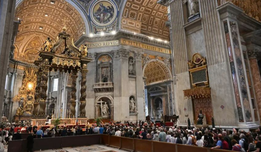 El féretro fue colocado frente a la tumba de San Pedro, enfrente del baldaquino de Bernini. La zona ha sido acordonada para que las personas guarden una distancia considerada y se mantenga el orden.