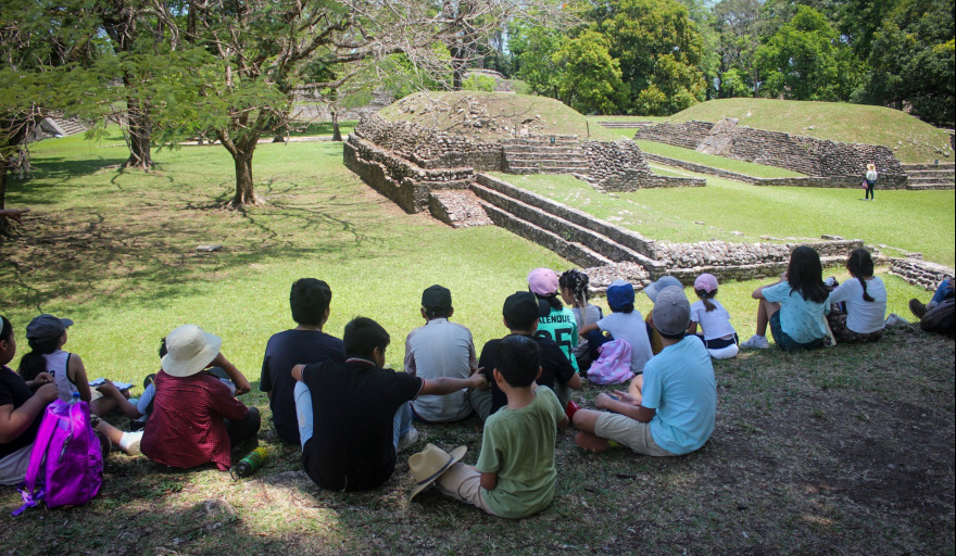 Acompañados por guías especializados, los pequeños exploradores vivieron una experiencia única al conocer de cerca las estructuras más emblemáticas del sitio, como el Templo de las Inscripciones, el Palacio, y la Plaza del Sol, aprendiendo sobre la historia, la arquitectura y la cosmovisión del mundo maya.