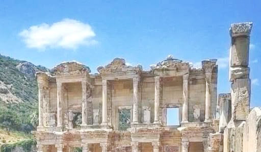 La Biblioteca de Celso se terminó en el año 135, por órdenes de Cayo Julio Aquila, quien dedicó este sitio a la memoria de su padre Cayo Julio Celso Polemaeanus, el procónsul de la provincia de Asia, quien fuera enterrado aquí, en una tumba de mármol dentro de una cámara funeraria, con un permiso especial solicitado por su hijo, pues semejante enterramiento iba en contra de las normas romanas.