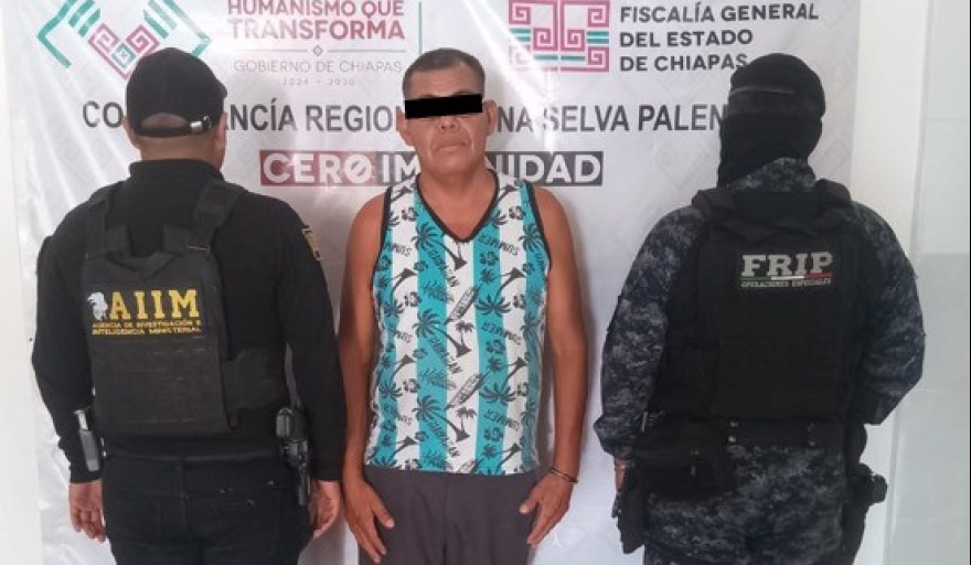 La Fiscalía General del Estado y la Secretaría de Seguridad del Pueblo cumplimentaron orden de aprehensión en contra de Rolando “N”, como presunto responsable del delito de violencia familiar, cometido en agravio de dos personas de identidad resguardada, por hechos ocurridos en el municipio de Palenque.