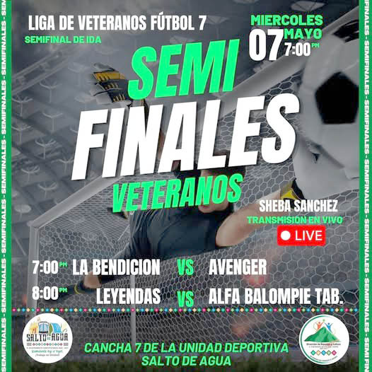 La emoción del deporte local alcanzará su punto más alto este miércoles 7 de mayo, cuando se disputen las semifinales de la Liga Municipal de Fut 7 en la Cancha de la Unidad Deportiva, a partir de las 7:00 PM. El H. Ayuntamiento de Salto de Agua hace una cordial invitación a toda la afición deportiva y a las familias del municipio para asistir y apoyar a los equipos que han llegado a esta crucial etapa del torneo.