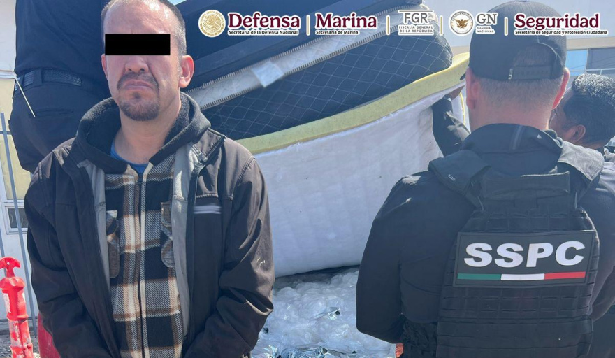 Resultado de trabajos de reforzamiento de seguridad en carreteras del país, en un dispositivo de inspección y vigilancia, en Baja California, elementos de la Secretaría de Seguridad y Protección Ciudadana (SSPC), Secretaría de la Defensa Nacional (Defensa), Secretaría de Marina (Semar), Guardia Nacional (GN) y Fiscalía General de la República (FGR) detuvieron a un hombre que transportaba 203 kilos de metanfetamina.