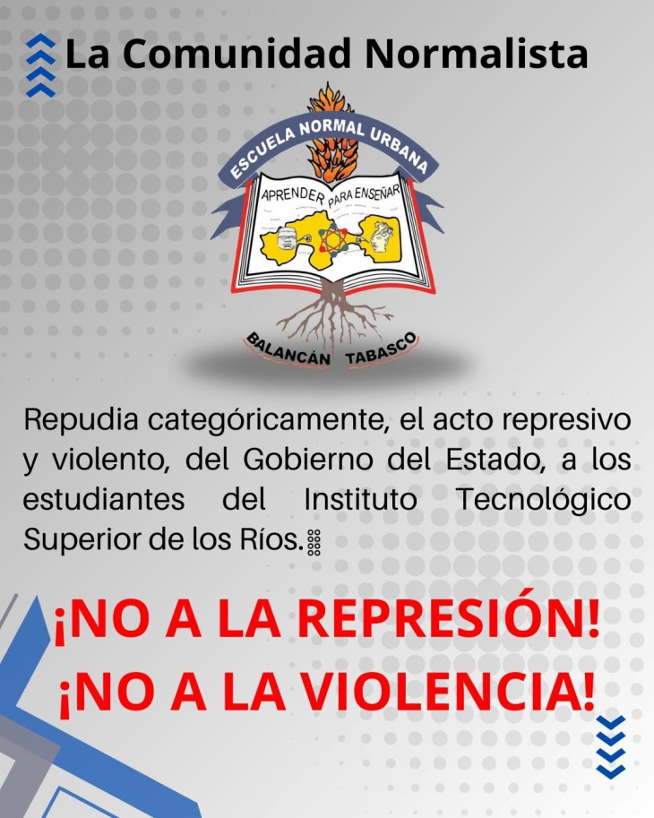 La comunidad normalista del estado también ha fijado postura de forma contundente, condenando los hechos ocurridos y exigiendo respeto a la libertad de expresión y al derecho a la protesta pacífica.