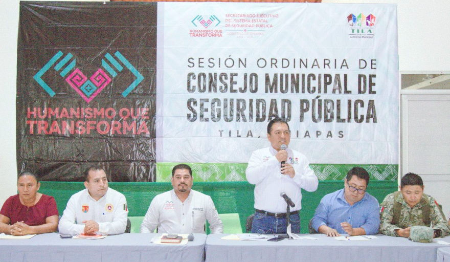 Con el objetivo de garantizar el buen funcionamiento de las instituciones encargadas de la seguridad y fortalecer la atención a la ciudadanía, el Ayuntamiento Constitucional de Tila, encabezado por el presidente municipal Neiser Hernández López, llevó a cabo en el poblado Petalcingo la Sesión del Consejo Municipal de Seguridad Pública.