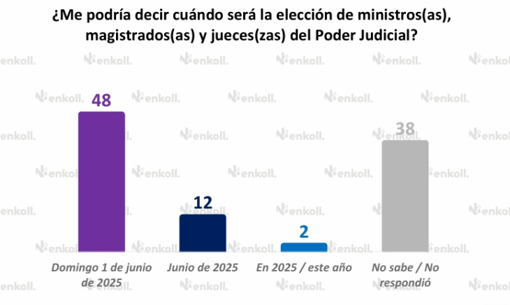 Finalmente, destacó el dato que indica que el 65 por ciento piensa que esta elección va a aumentar la confianza y legitimidad del Poder Judicial, contra el 25 por ciento que opinó que reducirá su confianza y legitimidad.