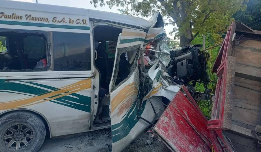 Según testigos, la combi circulaba a exceso de velocidad, lo que impidió frenar a tiempo. El impacto provocó la volcadura del camión y la combi terminó estrellada contra un árbol.