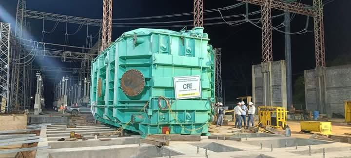 La Comisión Federal de Electricidad (CFE) informó la exitosa instalación de un autotransformador en la Subestación Eléctrica Malpaso Dos, ubicada en el estado de Chiapas. La operación, que requirió 19 horas ininterrumpidas de maniobras especializadas, concluyó satisfactoriamente a las 00:50 horas, momento en que el equipo quedó firmemente montado sobre su base definitiva.