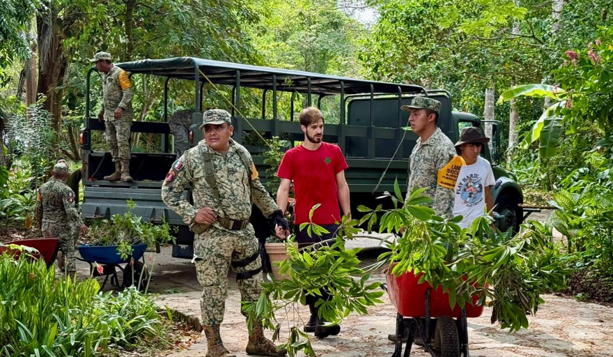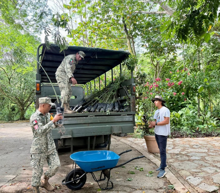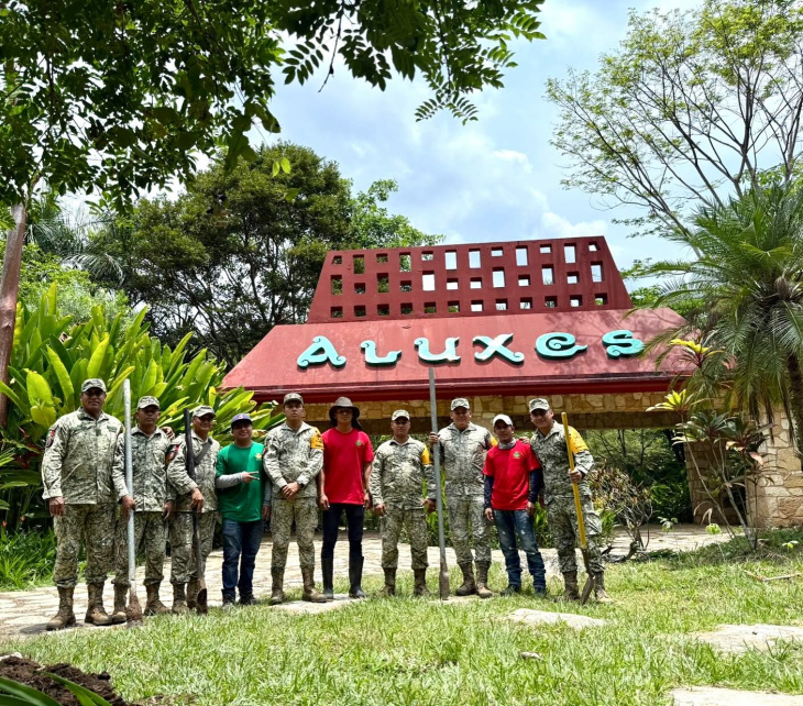 El personal del Batallón 4/a C.I.N.E. donó generosamente más de 100 árboles endémicos al Centro de Rescate Aluxes en Palenque. Los ejemplares fueron sembrados en los alrededores del centro como parte de una jornada de reforestación que busca fortalecer la salud de la selva y los espacios verdes de la región.