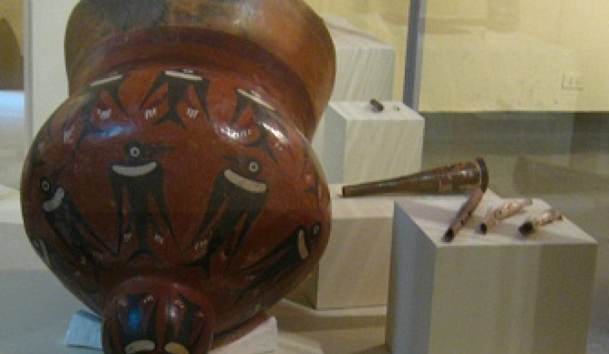 Los grandes tambores, que alcanzan una altura de entre 1 y 1,5 metros, tienen una forma parecida a las jarras globulares de cuello corto. Este modelo está caracterizado por un notable acortamiento de la parte superior (que a veces se abre un poco o es casi recta), al contrario que la parte esférica, más desarrollada, que tiende ligeramente hacia una forma ovoide y le otorga esbeltez al cuerpo. Posiblemente, al igual que los grandes recipientes cerámicos, estos tambores eran colocados en posición vertical, aprovechando para ello unos soportes añadidos, tal como sugieren los autores de las exposiciones museales. César Bolaños piensa que los grandes tambores podían estar instalados permanentemente en los lugares ceremoniales. De hecho estos instrumentos, pesados y difíciles de trasladar, podían encontrar su uso en celebraciones que se concentraban en torno a un mismo lugar. Tomando en consideración los destacados logros de los nasqueños en lo tocante a las experiencias acústicas, podemos suponer que el objetivo de construir instrumentos tan grandes era conseguir un sonido grave y resonante que se oyera a larga distancia. Por ende estos tambores serían colocados sobre plataformas de las estructuras arquitectónicas o en estancias parcialmente abiertas.