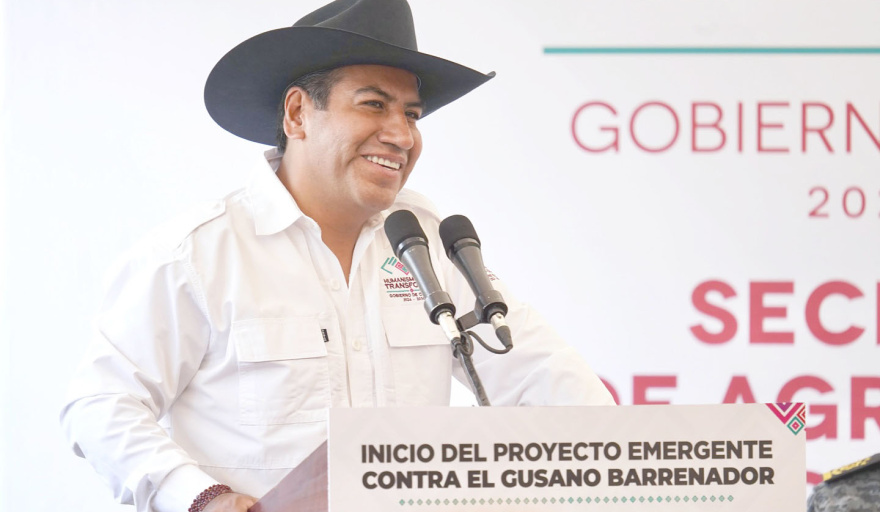 El gobernador del estado, Eduardo Ramírez Aguilar, encabezó el arranque oficial del Proyecto Emergente contra el Gusano Barrenador, una estrategia integral para hacer frente a esta plaga que afecta seriamente al sector ganadero. Acompañado por Arturo Macossay Córdova, coordinador general de Ganadería, el mandatario chiapaneco entregó de manera simbólica kits preventivos a productores locales, como parte de una primera etapa del programa.