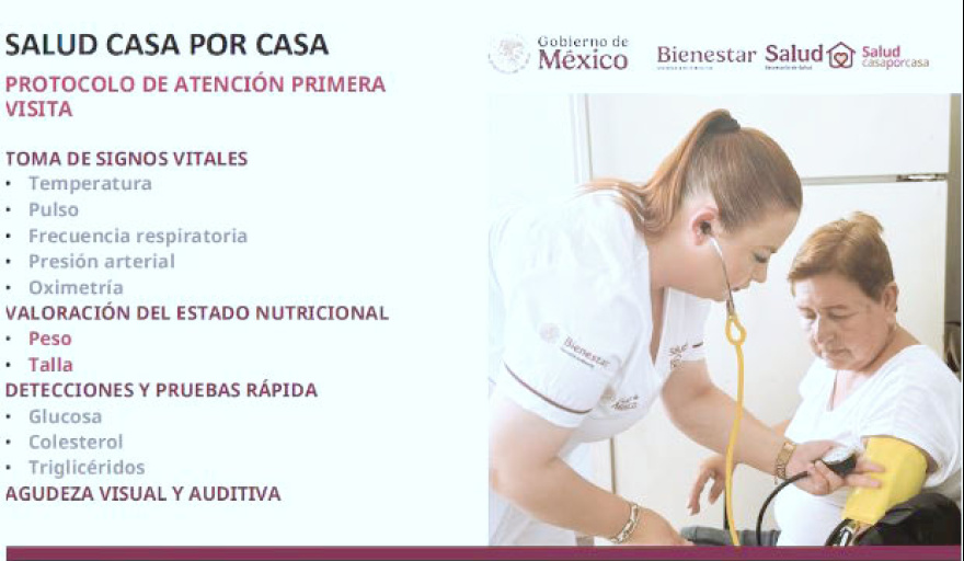Ariadna Montiel explicó que las visitas domiciliarias a este grupo de personas, se realiza con personal del sector salud capacitado de manera coordinada por la Secretaría de Bienestar y la Secretaría de Salud.