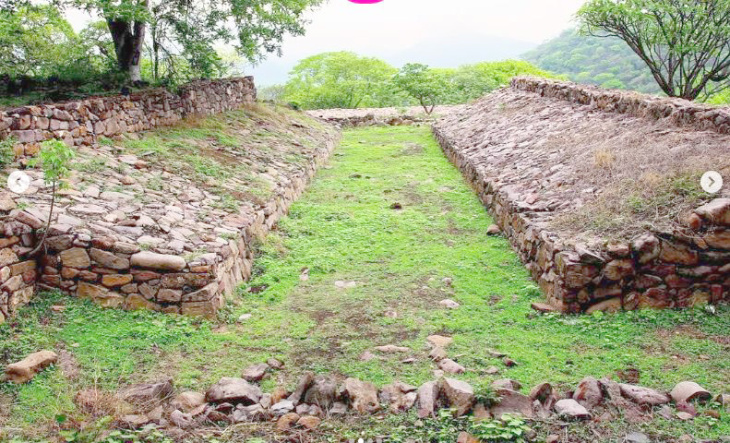 La zona está dividida en tres grupos: grupo A, B y C. El grupo A (cerro mesa de venado) se encuentra en la parte baja y podrás ver un juego de pelota, que no es muy grande, pero es alargado. Sus muros son altos, parecidos a lo que se ven en la zona de arqueológica de Xochicalco.
