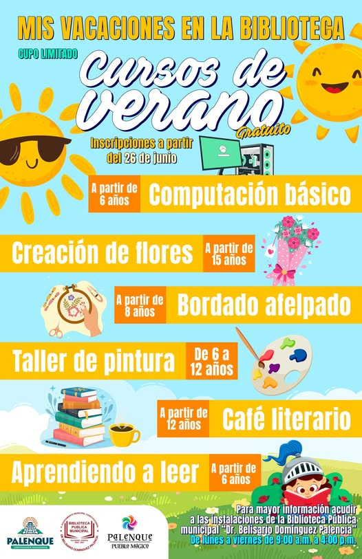Con el objetivo de brindar espacios educativos, seguros y recreativos durante el receso escolar, el H. Ayuntamiento de Palenque, lanza una cordial invitación a todas las niñas y niños del municipio para participar en el programa “Mis Vacaciones en la Biblioteca”, una iniciativa gratuita que busca fomentar el aprendizaje y la creatividad en un ambiente de sana convivencia.