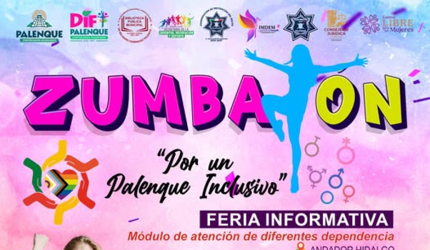 Con el objetivo de fomentar la inclusión, la participación ciudadana y el bienestar comunitario, el H. Ayuntamiento Municipal de Palenque, que encabeza el presidente Jorge Cabrera Aguilar, invita cordialmente al público en general a participar en el Zumbatón “Por un Palenque Inclusivo”, que se llevará a cabo este jueves 27 de junio a las 11:00 a.m. en la explanada del Parque Central.