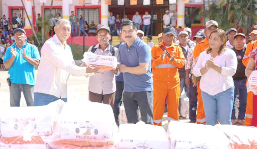 El presidente municipal de Chilón, Mario Hernández Aguilar, encabezó la entrega de uniformes al personal de Agua Potable y del área de Recolección de Residuos, en un acto que contó con la presencia de la presidenta del DIF, Eugenia Pérez Díaz; la directora del DIF, Cecilia Jiménez Miranda; regidores del Ayuntamiento, la directora de Agua Potable, el oficial mayor y personal de las áreas beneficiadas.