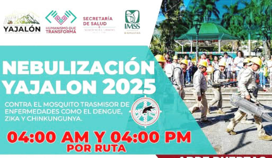 El H. Ayuntamiento Municipal de Yajalón que preside Juan Alberto Utrilla López, en coordinación con la Secretaria de Salud, realizarán la nebulización de la cabecera municipal para combatir la propagación del mosquito transmisor del dengue y otras enfermedades.