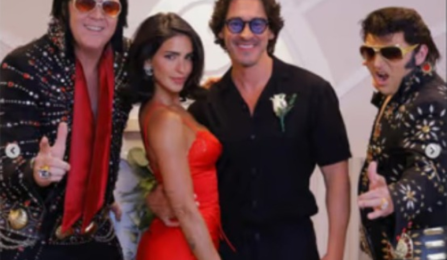 Bárbara de Regil y Fernando Schoenwald decidieron celebrar una década de amor con una original renovación de votos en la ciudad del entretenimiento: Las Vegas. La ceremonia, realizada en tono informal y lleno de alegría, contó con la presencia de un imitador de Elvis Presley, quien incluso acompañó a la actriz al altar.