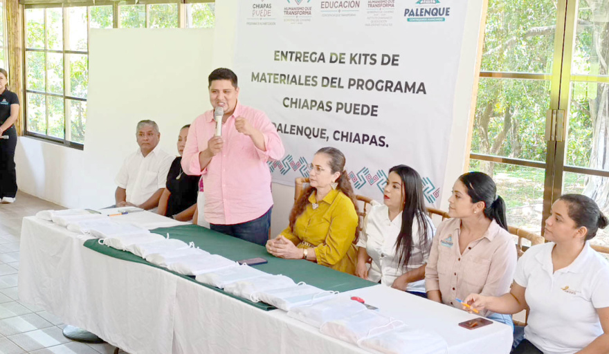 Jorge Cabrera Aguilar, presidente municipal de Palenque, hizo entrega este martes de Kits de materiales del programa “Chiapas Puede”.