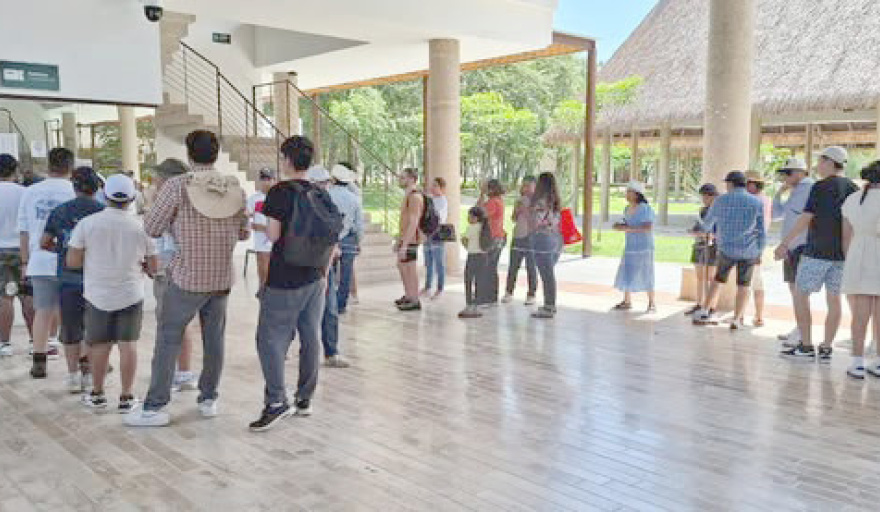 El CATVI, punto clave de ingreso al sitio histórico, ha comenzado a recibir a familias, grupos de amigos y viajeros nacionales e internacionales que buscan explorar el corazón del mundo maya y admirar sus templos, palacios y paisajes selváticos.