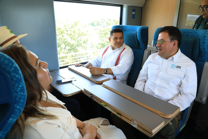 El gobernador de Tabasco, Javier May Rodríguez, abordó el Tren Maya en la nueva estación Tenosique Centro rumbo a El Triunfo, en Balancán, acompañado por autoridades municipales, estatales y el general Óscar David Lozano Águila, director del proyecto. Invitó a las familias a disfrutar esta experiencia que conecta en minutos a estaciones de los cinco estados del sureste, a través de más de 1,500 km de vía. Destacó que el Tren Maya traerá desarrollo y bienestar para Tabasco y toda la región.