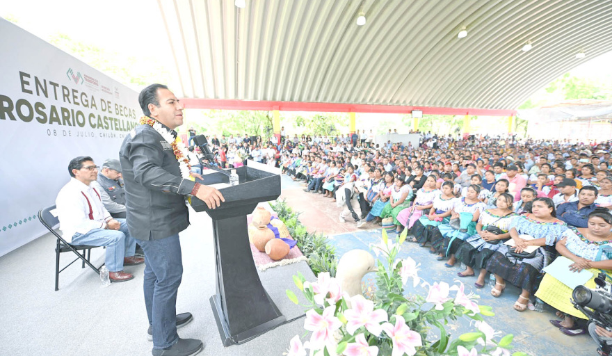 Desde el municipio de Chilón, el gobernador del estado, Eduardo Ramírez Aguilar, encabezó la entrega de las Becas Rosario Castellanos, una iniciativa que busca apoyar la formación académica de jóvenes chiapanecos como parte de la lucha contra el rezago educativo en la entidad.