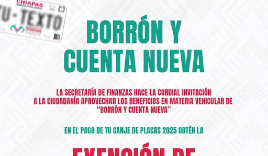 La Secretaría de Finanzas del H. Ayuntamiento de Palenque, hace una atenta invitación a la ciudadanía para aprovechar los beneficios del programa “Borrón y Cuenta Nueva”, en materia de regularización vehicular.
