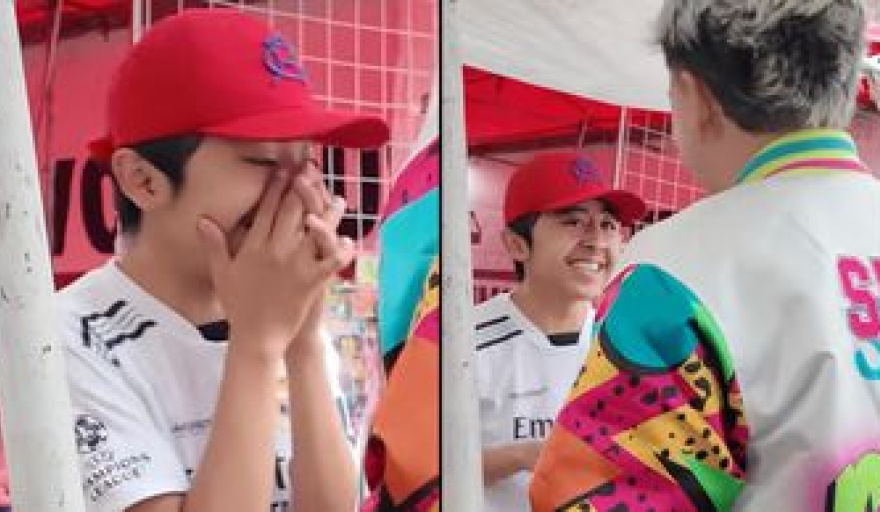 “Te quiero llevar al estudio, hagamos una canción tú y yo”, dijo el intérprete de Bata Boom y Promesas en un emotivo video que arrasó en redes sociales. Ángel, entre risas y con la humildad que lo caracteriza, solo atinó a pedirle los lentes al cantante… y los recibió junto con la promesa de una colaboración.