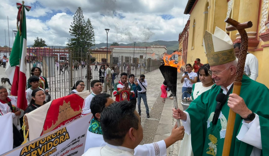 Con un recorrido de 50 días por las 7 zonas pastorales de la Diócesis de San Cristóbal de Las Casas, la Antorcha Servidora Juvenil llegó a la Parroquia de Guadalupe, acompañada de la TILMA de Nuestra Señora de Guadalupe. Este evento conmemora el 50 aniversario de servicio sacerdotal del Obispo Rodrigo Aguilar Martínez. Tras la llegada, se celebró una Misa de Acción de Gracias presidida por el padre Bartolomé Gómez, seguida por una caminata por la calle Real hacia la Catedral, donde el obispo ofició la Misa de mediodía, transmitida en vivo.