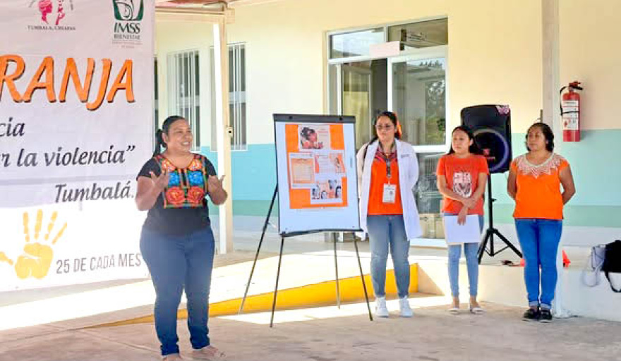 En conmemoración del Día Naranja, este 25 de julio se llevó a cabo una importante plática organizada en conjunto por el área de Prevención del Delito, el Instituto Municipal de las Mujeres (INMUJER) del Ayuntamiento de Tumbalá, y el IMSS Bienestar. El evento tuvo como objetivo fomentar la concientización y la prevención de la violencia contra mujeres y niñas en el municipio.