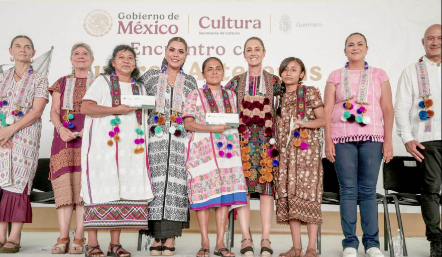 Desde el Pueblo de Amuzgo, en el estado de Guerrero, la Presidenta Claudia Sheinbaum Pardo encabezó la entrega de Créditos a la Palabra para mujeres artesanas que se dedican a la elaboración de textiles, particularmente del tradicional huipil, con el objetivo de garantizar su comercialización a precios justos y el bienestar de las mujeres indígenas y afrodescendientes.
