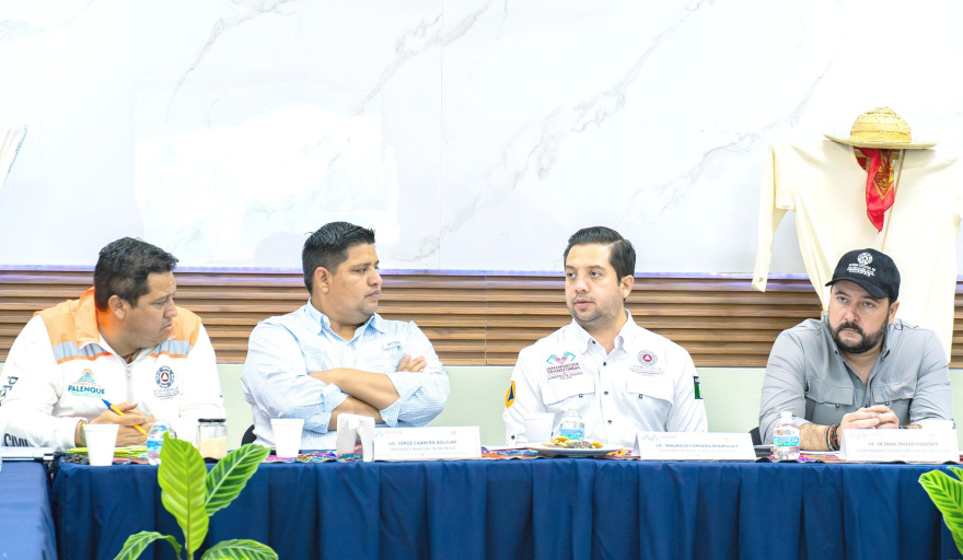 El Presidente Municipal de Palenque, Jorge Cabrera Aguilar, sostuvo una reunión de trabajo denominada “Fortalecimiento para la Prevención y Atención de Emergencias ante la Temporada de Lluvias y Ciclones”, con el Secretario de Protección Civil del Estado, Mauricio Cordero Rodríguez, y el Coordinador de Supervisión y Evaluación Regional, Octavio Toledo Clousser.
