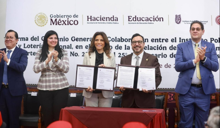La ceremonia se llevó a cabo en el Centro Histórico y Cultural “Juan de Dios Bátiz”, donde la directora general de la Lotería Nacional, Olivia Salomón, y el director general del IPN, Arturo Reyes Sandoval, firmaron un Convenio General de Colaboración Académica, Científica y Tecnológica, con el objetivo de fortalecer los vínculos entre ambas instituciones.