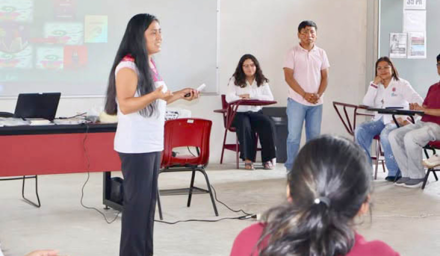 Los talleristas Aurelia Guzmán, Micaela Mayo, Zulema Cruz y Sedequías Álvarez, compartieron la cosmovisión del pueblo Ch'ol, la riqueza de la lengua a través de juegos de lotería, memorama, proyección de videos y al final retroalimentaron con una actividad de asociación imagen/palabra en Ch'ol.