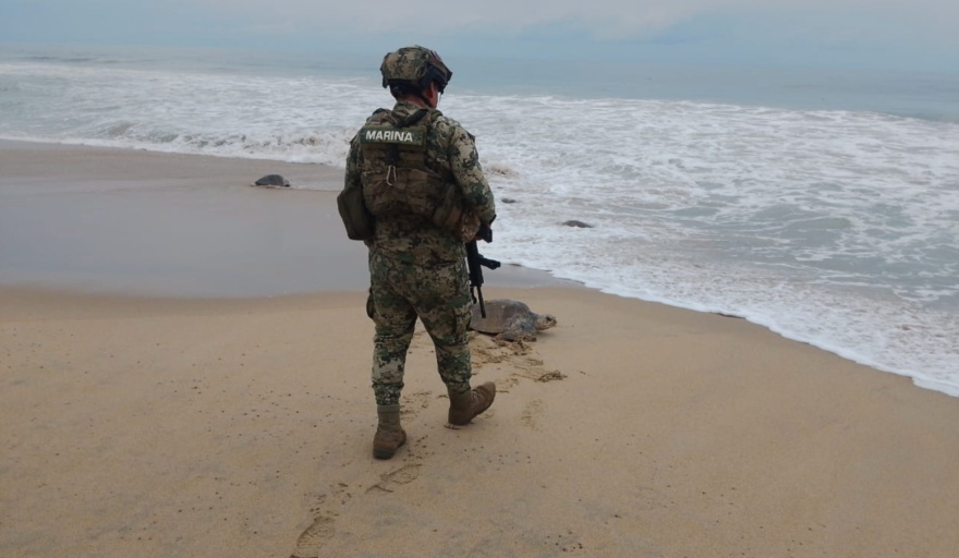 Con el objetivo de preservar el medio ambiente y las especies marinas, elementos de la Armada de México custodiaran la arribazón, que se llevó a cabo del 16 al 21 de octubre del presente año, correspondiente a la temporada 2025-2026.
