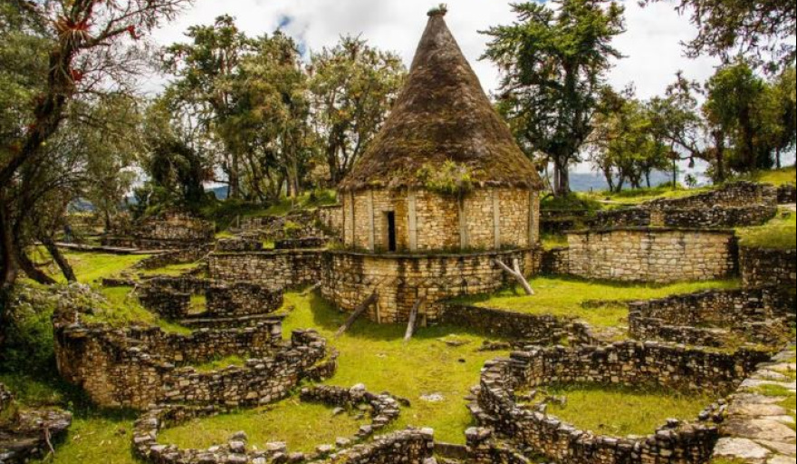 El interior de la ciudadela conserva más de 400 estructuras circulares, muchas de ellas utilizadas como viviendas construidas sobre plataformas elevadas. Estas edificaciones muestran la sofisticación arquitectónica de los Chachapoyas, incluyendo canales de drenaje y cornisas talladas que protegían las construcciones de las intensas lluvias de la región.