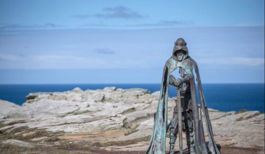 En lo alto de los acantilados de Cornualles, Reino Unido, se erige la llamada “estatua del Rey Arturo”, oficialmente conocida como Gallos. Esta impresionante figura de bronce de 2.4 metros de altura se encuentra en el Castillo de Tintagel, un lugar profundamente ligado al mito artúrico y a las antiguas leyendas británicas.