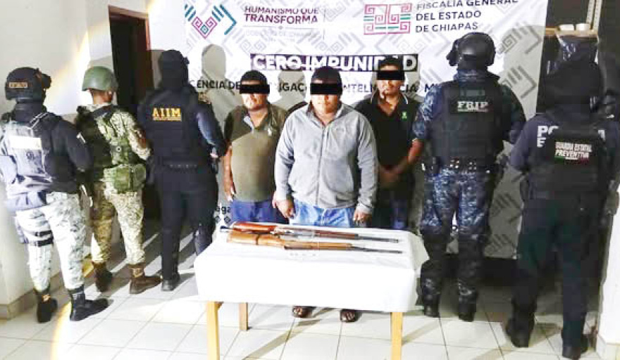 El Grupo Interinstitucional conformado por la Fiscalía General del Estado, la Secretaría de la Defensa Nacional y la Secretaría de Seguridad del Pueblo, cumplimentaron tres órdenes de aprehensión en contra de Pascual “N”, Alfredo “N” y José “N”, como presuntos responsables del delito de homicidio calificado, cometido en agravio de quien en vida respondieran a los nombres de Lorenzo “N”, Sergio “N” y un niño de identidad reservada, por hechos ocurridos en el ejido El Pirú, de Marqués de Comillas, el pasado 2 de noviembre de 2025.