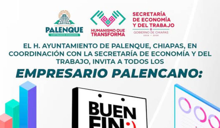¡Atención empresarios de Palenque! El H. Ayuntamiento Municipal, en coordinación con la Secretaría de Economía y del Trabajo, invita a comerciantes y emprendedores locales a participar en El Buen Fin 2025, el fin de semana más barato del año.