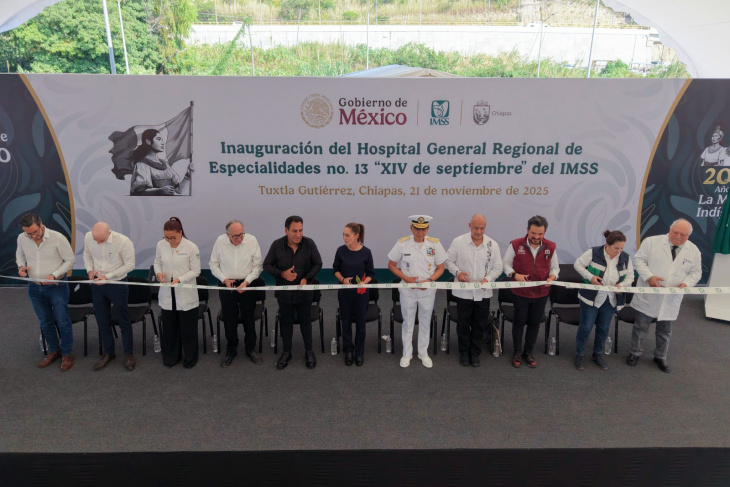 Desde Tuxtla Gutiérrez, Chiapas, la Presidenta Claudia Sheinbaum Pardo convocó a las y los mexicanos a celebrar siete años de la Cuarta Transformación en el Zócalo de la Ciudad de México, tras inaugurar el Hospital General de Especialidades No. 13 “14 de septiembre” del Instituto Mexicano del Seguro Social (IMSS).