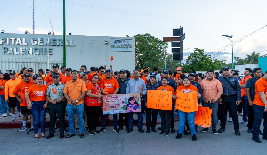 En el marco de la Conmemoración del Día Internacional de la Eliminación de la Violencia contra la Mujer, el H. Ayuntamiento Municipal de Palenque, a través de la Dirección de Prevención del Delito y la Instancia Municipal de la Mujer, en coordinación con y las Jornadas por la Paz que impulsa la Mesa de Seguridad, llevó a cabo una “Caminata contra la Violencia”, como símbolo de protesta pacífica para la erradicación de la violencia contra las mujeres. Esta caminata partió desde las afueras del Hospital General y culminó en el Palacio Municipal de esta ciudad.