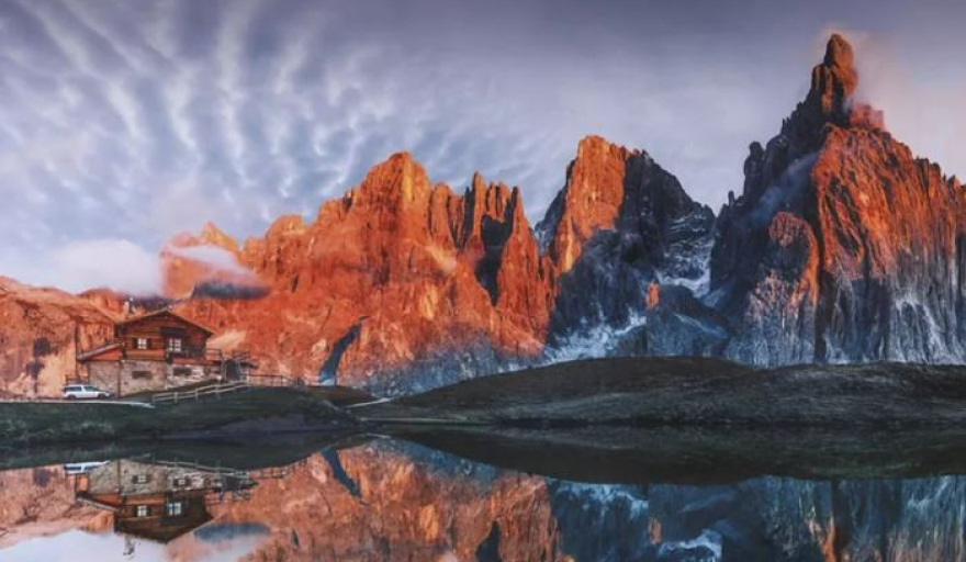 El nombre de estas montañas proviene del mineral dolomita, identificado por el geólogo francés Déodat de Dolomieu en el siglo XVIII. Esta composición mineral no solo definió la identidad de la cordillera, sino que es la responsable de uno de sus fenómenos más célebres: el enrosadira, un instante mágico en el que las cumbres se tiñen de tonos rosados y dorados durante el amanecer y el atardecer.