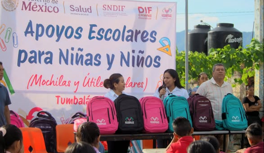 El H. Ayuntamiento de Tumbalá informó que, a través del DIF Municipal en coordinación con el DIF Regional, se realizó la entrega de mochilas con útiles escolares a estudiantes de diversas comunidades del municipio.
