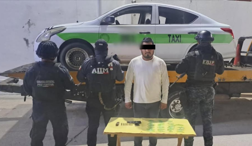 Posteriormente, se le realizó una inspección corporal y al vehículo, localizándole un arma de fuego calibre .380 y 25 veinticinco bolsitas con material sólido cristalino con las características de la metanfetamina, por lo que se procedió a detenerlo y a ponerlo a disposición del Ministerio Público correspondiente.