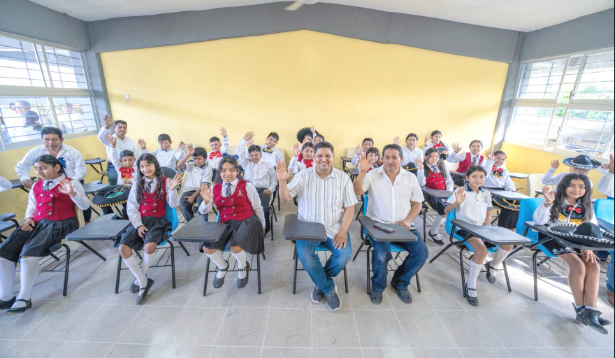 El presidente municipal de Palenque, Jorge Cabrera Aguilar, visitó la colonia Luis Donaldo Colosio para entregar dos nuevas aulas en la primaria Juan de Dios Peza, en un acto que refuerza el compromiso del gobierno local con la educación.